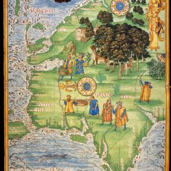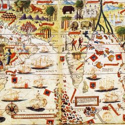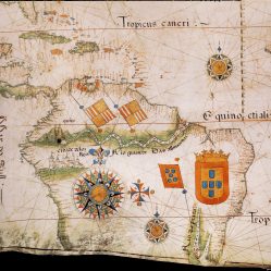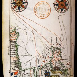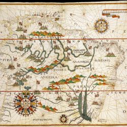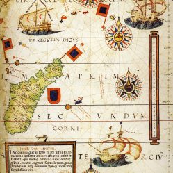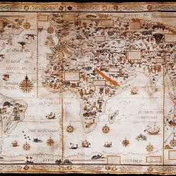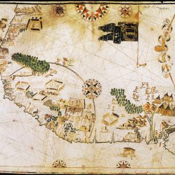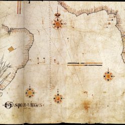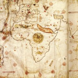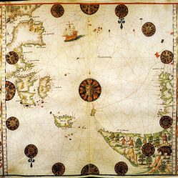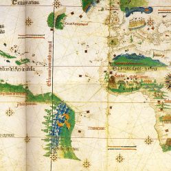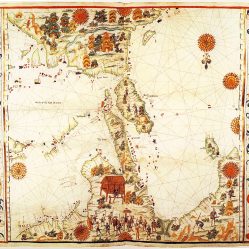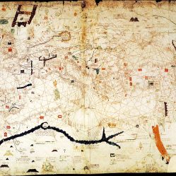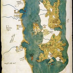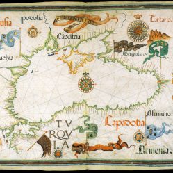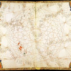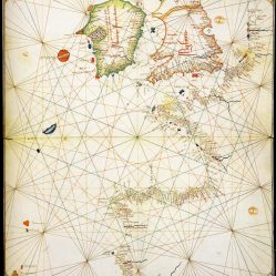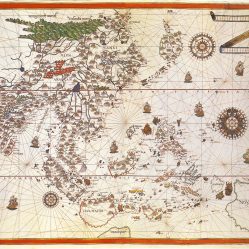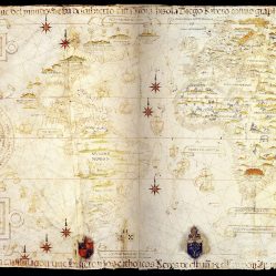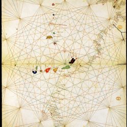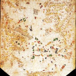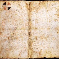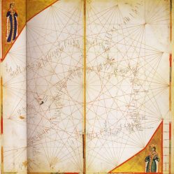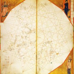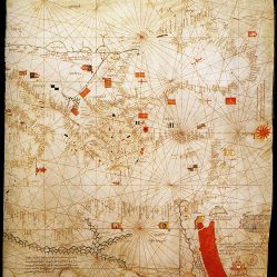 На портуланах Средиземного и Черного морей, датируемых XIV-XV столетиями, нами была обнаружена точность соотношения широты и долготы, которая – по Страхану, подразумевала использование сферической тригонометрии. Карта де Канерио 1502 года еще больше проясняла эту проблему. Прежде всего – она составляла единое целое с картой Средиземного и Черного морей, что подтверждало существование общего оригинала для портуланов XIV-XV столетий.