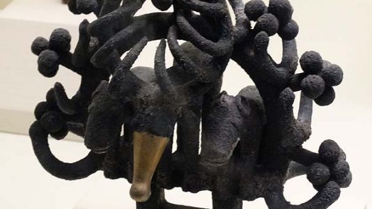 Один блок вообще больше похож на трехмерную статую. Эта статуя по стилю во многом схожа со сфинксами ворот, и вместе с ними может иметь более древнее происхождение.