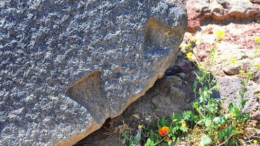 В самой главной части храма-цитадели имеется археологический раскоп, в котором видно, что 2 ряда блоков из трех каменного пола располагаются ниже среза скального основания. Зачем потребовался такой весьма нетривиальный фундамент – тоже не ясно.