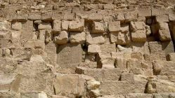 2. Снова имеем разрушенный верх и сохранившийся низ. Очень часто встречается. Трудно объяснимо: почему с самых удобных уровней облицовку так и не забрали?!. И куда делась вся эта облицовка в столь массовом количестве по всему Египту? Как версия: вверху и не было такой облицовки. На качественное древнее сооружение просто навалили кучу камней. Делать же выше подобную облицовку уже просто не умели.