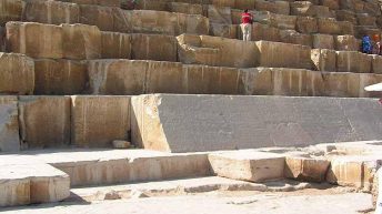 2. “Целая” облицовка с западной стороны – из отдельных “нашлепок” – реконструкция. Изначально гиды по непонятным причинам озвучили дату этой реконструкции 12-м веком н.э. В результате дискуссии по деталям гиды перевели дату реставрации с 12 на рубеж 19-20 веков. Гораздо больше похоже на новодел (присутствуют бороздки, аналогичные тем, что видны на современных блоках известняка, – результат воздействия какого-то инструмента по механической разделке породы, типа фрезы).