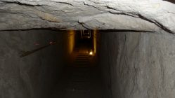 В южной части помещения лестница опять же теряется в мусоре и невозможно понять – она заканчивается сразу после арки (и тогда, значит, она ведет именно в это помещение или непосредственно из него) или продолжается вниз и уходит неизвестно куда, так же как неизвестно откуда исходит – и тогда вообще ничего непонятно! А если продолжить дугу балки, то она уходит под пирамиду и, создается ощущение, что непосредственно с ней связана.