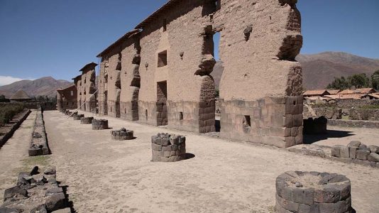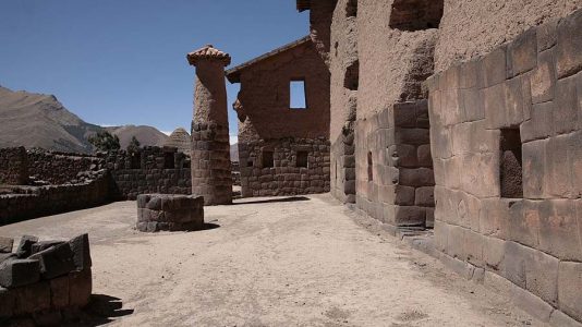 Поверх этажа более-менее приличной каменной кладки – несколько этажей из щебня на растворе (на каменной кладке сохранились следы розоватой штукатурки, которой кладка была покрыта явно в целях красоты и единообразия). Классический пример вторичного использования при отсутствии старых развитых технологий. Объект примечателен тем, что дает наглядное представление о том, как выглядел комплекс Кориканча в Куско на момент прихода туда испанцев (судя по их описаниям). А соответственно и о том, что инки в реальности не имели к постройке Кориканчи никакого отношения.