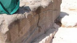 Смущает обилие этих следов на ограниченном пространстве. Больше в таком количестве их нигде не попадалось (за исключением трубчатого сверления – см. Саккара и Абусир). По словам местного инспектора следы машинной обработки на черном базальте – побочный результат реставрации поля храма немецкой миссией в 1905. Реставрация действительно видна – раствор между осколками базальтовых блоков. Однако непонятно, зачем надо было что-то пилить. Достаточно было лишь собрать мозаику из осколков одного цвета…