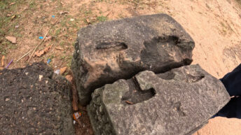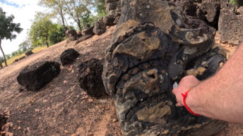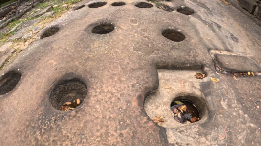 В этой поездке мы нашли 12 таких блоков и со слов гидов назначение их неясно, но считается, что эти элементы находились в шахтах под лингамами в самых древних индуистских храмах. Однако, когда буддисты приспосабливали эти храмы для своих ритуалов, то обязательно вскрывали шахту и просто выбрасывали эти элементы, возможно изымая из них те самые предметы.
