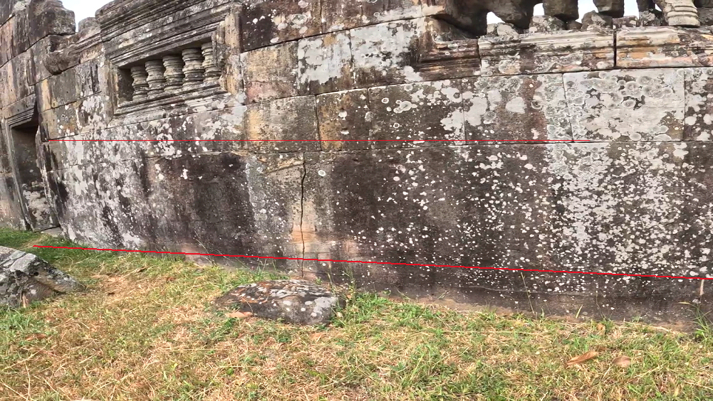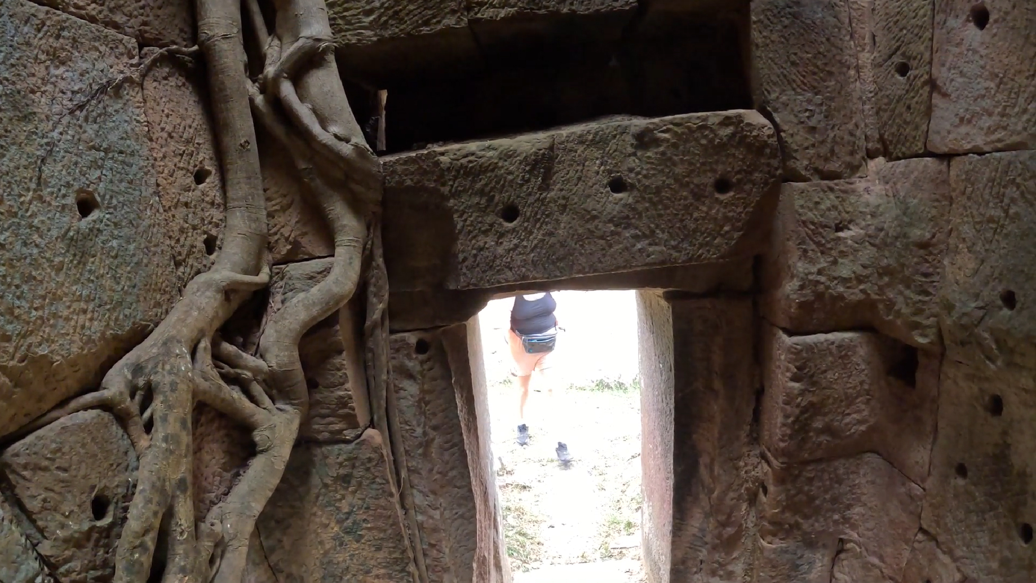 Второй момент, это пустоты над оконными и дверными перемычками, которые вырезались в каменных блоках, при строительстве и после его завершения были не видны. Сейчас их можно обнаружить в разобранных местах кладки, для чего делалась эта трудозатратная операция не до конца ясно. С инженерной точки зрения это уменьшение сечения каменной кладки и увеличение нагрузки на перемычку. Возможно, что в этих пустотах что-то находилось, однако кхмеры при вторичном использовании многие перемычки пробивали в поисках этих предметов.