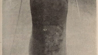 (9) После удаления льняных бинтов с боков грудной части было замечено, что мышечные мясистые части тела почти полностью исчезли, за исключением небольших участков тонких слоев более стойких волокнистых тканей. Под этими слоями обнаружен более или менее белый плотный слой, который различался по толщине в разных частях груди. Было доказано, что этот слой представляет собой жир тела, который не был подвергнут атаке или омылению. Даже там, где он исчез за пределами распознавания невооруженным глазом, его наличие было ясно обнаружено под стереомикроскопом между внутренними набивками грудной полости и внешними льняными бинтами. Этот материал проанализирован под номером 6.