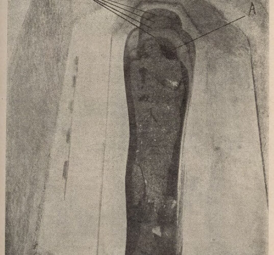 Таким образом, материал оболочки (покрытия) мумии, по-видимому, состоял из льна, землистого вещества, натрона, листьев и других мягких тканей некоторых растений, перьев птиц, смешанных с камедью-смолами или смолами.
