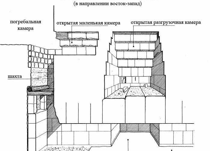Тот факт, что камера расположена точно над южным отсеком и непосредственно на блоках, перекрывающих отсек без их выравнивания и покрытия, и является глухой, приводит нас к предположению, что единственная ее функция – уменьшение нагрузки на южный отсек.
