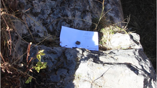 10 – образец породы с места, предположительно считающегося каменоломней, где добывался материал для строительства стен.