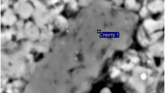 Присутствуют тонкие зерна кварца и калиевых полевых шпатов, обычно выветрелых а также единичные зерна оксидов (гидроксидов?) железа неправильной формы размером 20-30 мкм и кристаллики KCl.